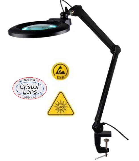 Industrial ESD+UV Magnifying Lamp KML9006UV Safe with Articulating arm LED 14W+5″ 4x lens