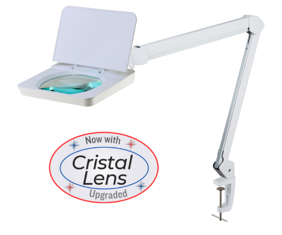 - A brand new design LED Magnifier 24W Super-wide, ultra slim and stylish lens. Long reach, professional grade articulated arms, Very high brightness 1500 lumens LED Illuminated magnifier. Balanced enclosed spring metal arms. Huge diameter Square glass lens. Bright White large LED Illumination, perfect for the Industrial Magnifying Lamp KML9008L.