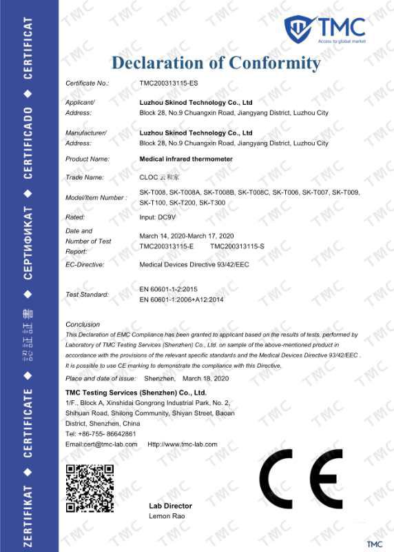 | Accuracy | BodyTemperatureMode:35.0℃-42.0℃ Within range ±0.2℃ Body Temperature Mode:35.0℃-42.0℃ Out of range ±0.3℃ |