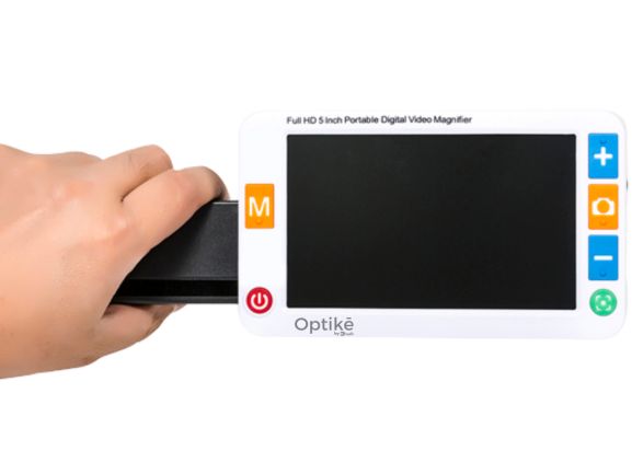 An Optike Brand 5.0-inch Portable LCD Video Magnifier has a high-definition camera with a high-quality image and stable viewing. You can easily carry around to help read news papers, medicine instructions, recipes, magazines, and books.It offers up to 32X infinite amplifying and a comfortable built-in handle. This is a practical yet sleek, high-quality low-vision aid for fulfilling vision-loss people’s various needs.