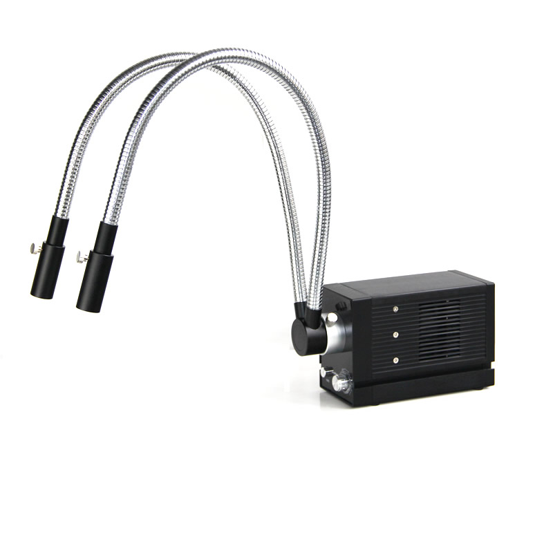 The fiber optic microscope illuminator provides strong, even and cool daylight illumination. It utilizes overall heat sink, high