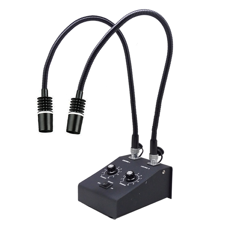 This is an LED illuminator with two 22-3/8″ long 3-Watt gooseneck lamps that can be bent into various positions. The controller features independent intensity-control for each lamp, allowing for customized lighting-balance. This high-intensity cool lighting LED system is excellent for all applications including biological and electronics applications.