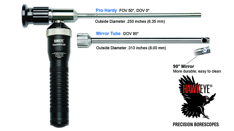 Borescopes are rugged and bright. The quarter inch diameter Pro Hardy gives 3x the illumination of the Pro Slim. The Super Hardy is slightly wider at .283 inches, and is available in lenghts of 28 and 37 inches.