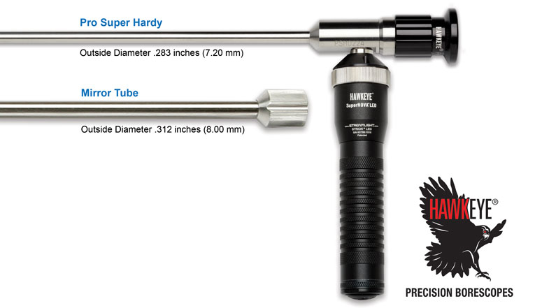Borescopes are rugged and bright. The quarter inch diameter Pro Hardy gives 3x the illumination of the Pro Slim. The Super Hardy is slightly wider at .283 inches, and is available in lenghts of 28 and 37 inches.
