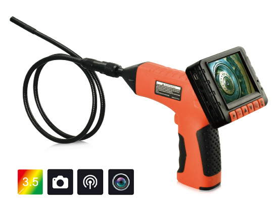 This 3.5 inch portable borescope inspection camera supplier, with Industrial Wireless Video Borescope capabilities, offers a 2.4Ghz wireless transmission function, complete with recording capabilities. The Industrial Wireless Video Borescope can also create photos and videos. Cutting tube or flexible tubes are available. The diameter has four sizes for your choice. 3.9 mm / 5.5 mm, semi-rigid / removable tube can withstand bending and easily fasten. The camera tube can penetrate through the combustion chamber or the valve to remove or test the carbon Depot. It is widely used, can be used for Detection and diagnosis of engine cylinder, fuel engine, silencer, transmission systems, differential, water tanks, fuel tank, gearbox, coke, block, etc. Remote work efficiency, and also avoid the damage caused by repeated disassembly.