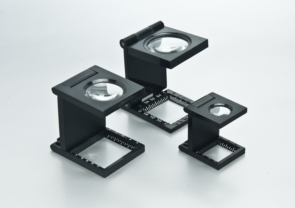 This magnifying glass (Jewel Inspection Loupe) is particularly suitable for viewing flat surfaces such as: photo negatives, slides, stamps, banknotes, textiles, maps, etc. The magnifying glass contains a scale on the edge of the pedestal. This is useful, for example, for card reading or counting the number of threads per centimeter of tissue. Lens diameter: 28 mm Lens material optical glass