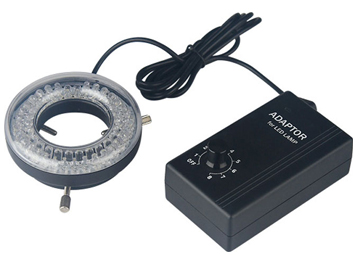 LED Ring Light is an intensity-adjustable 64-LED ring light with control box. Its mounting size is up to 2-1/2″ (64mm) in diameter. You may use the feature to change lighting directions and obtain the best illumination for your application. The ring light has 2-1/2″ (64mm) inside and 4″ (100mm) outside diameters. It works with power supplies from 110V to 240V. It comes with a 1-7/8″ (48mm in diameter) ring adapter.