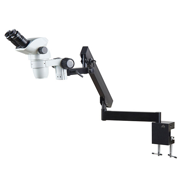 The OptoMag 23SF Stereo Zoom Microscope has a side-mount zoom control system, is easy to operate, and is perfect for use with bonders and probe arms. Once brought into focus, images remain clear throughout the whole zoom range, and it provides excellent 3D images with high resolution. It has a large field of view, a long working distance and a large depth of field. The sturdy double-arm flexible stand offers solid support with excellent flexibility. It is an ideal instrument for research labs, gemmologists, collectors, engravers, and anyone in the semiconductor and electronics industries.