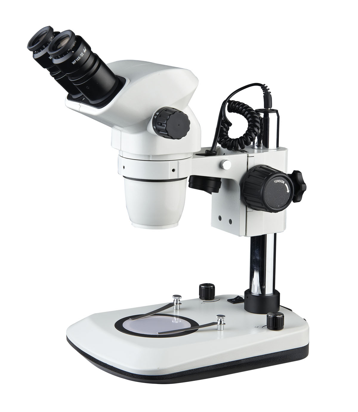 - This high-quality 7X–45X binocular stereo zoom microscope comes with super-wide field optics and a pole stand with dual LED illuminators.