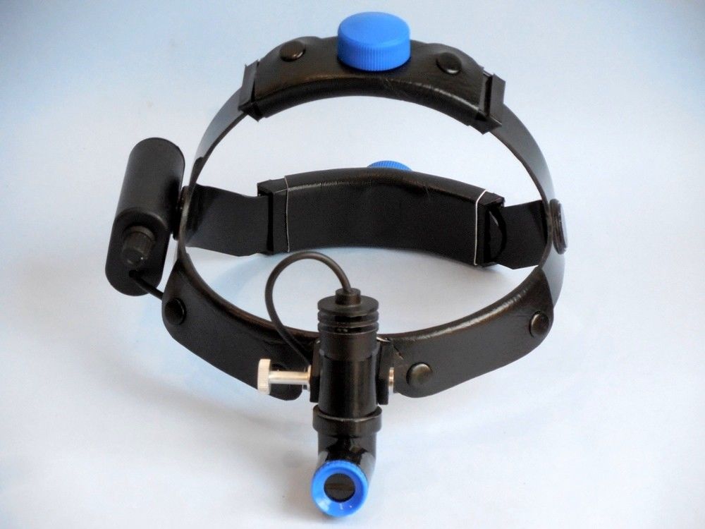 Surgical LED Headlight – Multiple optical system concentrates and focuses the brightest white light available – virtually shadow free. Coaxial Fiber Optic Headlight is available with a variable 10-80mm light spot or with a fixed 80mm light spot at a 16” distance. At 19.5” the spot size is 100mm for fixed or variable type headlight. Unique design enables headlight adjustment from side to side and from straight down and upward positions