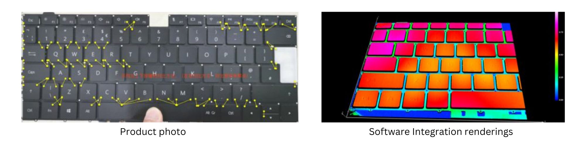 3. The extreme height difference of each button - Advantage: Large field of view, high precision, fast calculation of one-time imaging by static scanning. Flexible configuration of measurement operators, and support for software customization development.