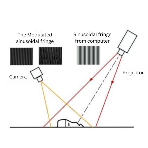 An Optike brand SS/SD Series structured light 3D sensor is an encoded, structured light projected on the object that is deformed due to the existence of the object. The CMOS collects multiple deformed fringe images and processes them through a specific algorithm to obtain the 3D point cloud information of the photographed object.